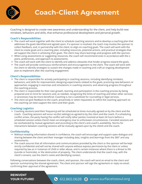 - Write coaching contract/agreement that both parties sign.
