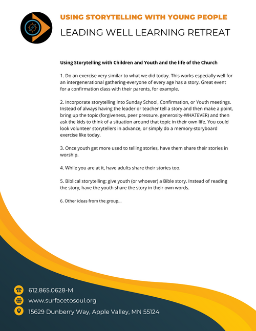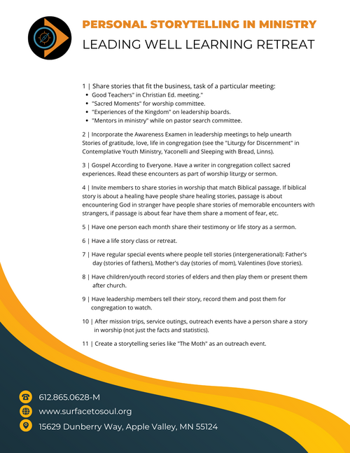 - Incorporate storytelling and God-sighting exercises in your congregations.