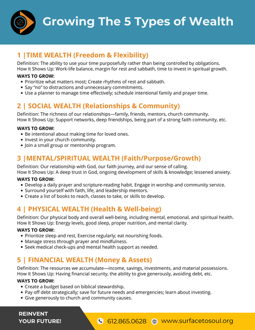 Jim is the founder of Surface to Soul, a training and coaching organization focused on helping church leaders live, lead, and coach well. He oversees Surface to Soul's ICF-certified Coaching School in partnership with Rev. Dr. Felix Villanueva. Jim is the project coordinator for Vibrant Faith's Pastoral Leadership Development (PLD) program funded by the Siebert Lutheran Foundation. Jim values adventure, authenticity, connection, and contribution and helps people redesign their lives based on The 5 Types of Wealth. He lives in Minnesota with his wife, Gina, and enjoys biking, hiking, and kayaking, and believes that every coach should have a coach.