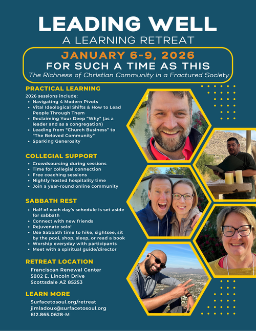This year’s event will be held January 6-9, 2026, in Scottsdale, AZ at the Franciscan Renewal Center. This event is designed for ALL leaders who work in faith-based ministry settings (not just pastors!).