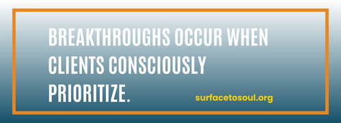 - Breakthroughs occur when clients consciously prioritize.