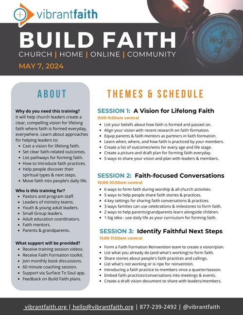 - Create a first draft of a vision for lifelong faith; share with leaders.