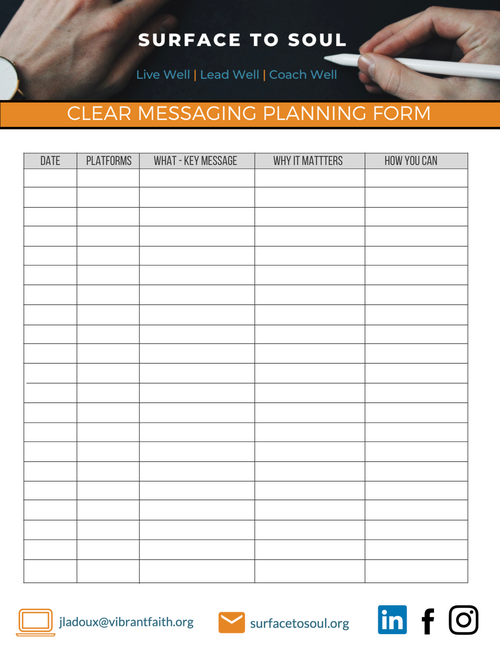 - Include scripture, mission and values as much as possible.