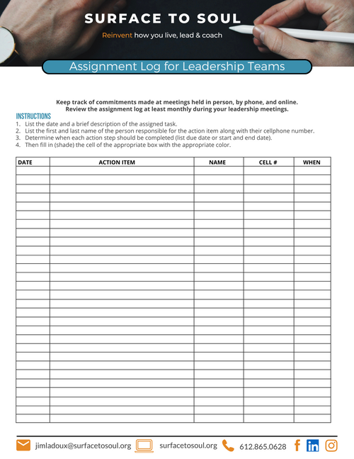 - A: Track people's current projects using an Assignment Log.