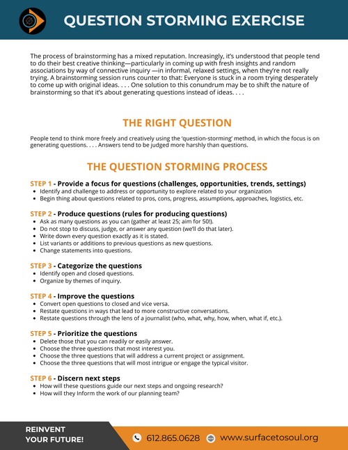 - Asking powerful questions - during worship, among our members, with our neighbors, and through our online platforms.