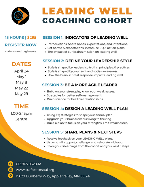During this cohort, we'll address ways to:- Lead yourself, lead up, lead laterally, and lead your teams