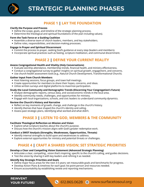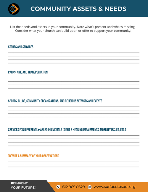 - Review the church's current mission, vision, and values.